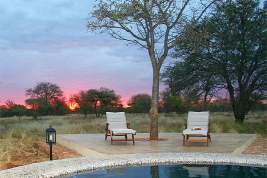 Buffalo Thorn Safari Lodge offers a self catering bush lodge experience in a private game reserve near Tomburke in the Koedoesrand district in Limpopo's Waterberg region. Buffalo Thorn Safari Lodge is situated on the Farm Engelsea only 20km from the Martinsdrift/Groblersbrug border post and is the ideal stop over on route to Botswana or Zimbabwe or Maphungubwe. This 4 star luxury lodge is part of a private game reserve and is designed to accommodate over-nighters or an exclusive self catering group of up to 20 people but fully catered stays can be arranged. Our new colonial styled accommodation embraces nature at every turn and offers all the privacy and superior comfort you would need for uninterrupted relaxation. Every luxury lodge chalet has an en-suite bathroom, outside rock shower, fridge, kitchenette or coffee bar, air conditioner and deck. The overnight chalets has well equipped kitchens, patio with dining set and built in braai overlooking the water hole as well as en suite bathrooms with double vanities, baths and showers. The two main buildings feature each a fireplace, satellite TV lounge and dinning room that leads on to the big hearty stoep, overlooking the waterhole and makes for great entertainment. The stoep from the main lodge also leads to the swimming pool and the boma, forming the perfect place to bring family and friends together around a crackling fire. Game drives and guided bushwalks are some of the activities you can enjoy during your stay. Our tracker and ranger is a real delight with an unparalleled knowledge of animal behavior and a passion for sharing that with people.